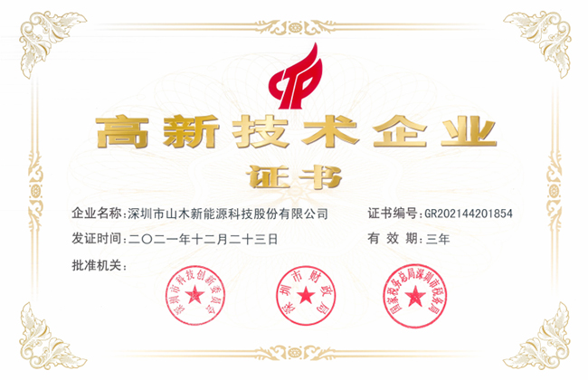 公司先后获得国家高新技术企业、深圳市“专精特新”企业、绿色工厂、智能制造工厂、大湾区知名品牌等多项资质与荣誉,并建立了完善的质量、环境及职业健康安全管理体系,通过ISO 9001、ISO 14001、OHSAS 18001、IATF 16949等体系认证。多款产品符合并通过UL、CE、CB、IEC、UN38.3等国内外权威标准与检测认证。