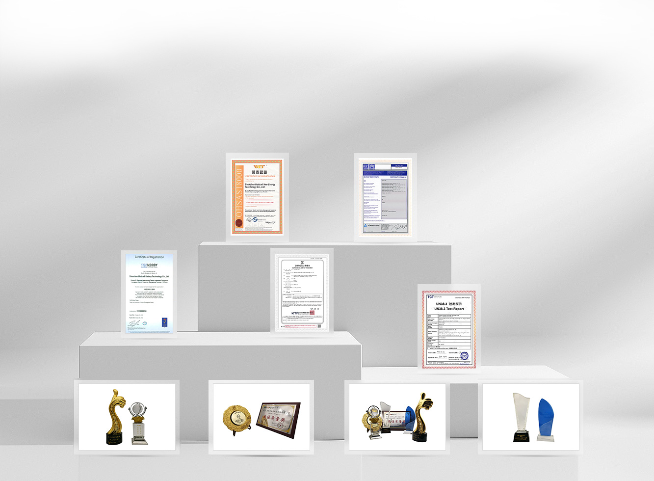 公司先后获得国家高新技术企业、深圳市“专精特新”企业、绿色工厂、智能制造工厂、大湾区知名品牌等多项资质与荣誉,并建立了完善的质量、环境及职业健康安全管理体系,通过ISO 9001、ISO 14001、OHSAS 18001、IATF 16949等体系认证。多款产品符合并通过UL、CE、CB、IEC、UN38.3等国内外权威标准与检测认证。